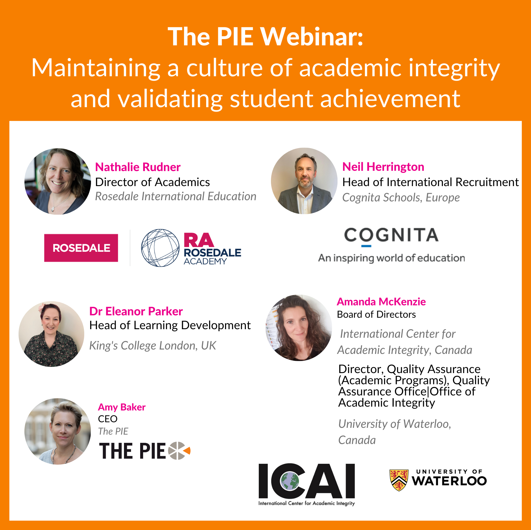 The webinar is chaired by Amy Baker, CEO of The PIE, with panelists including: