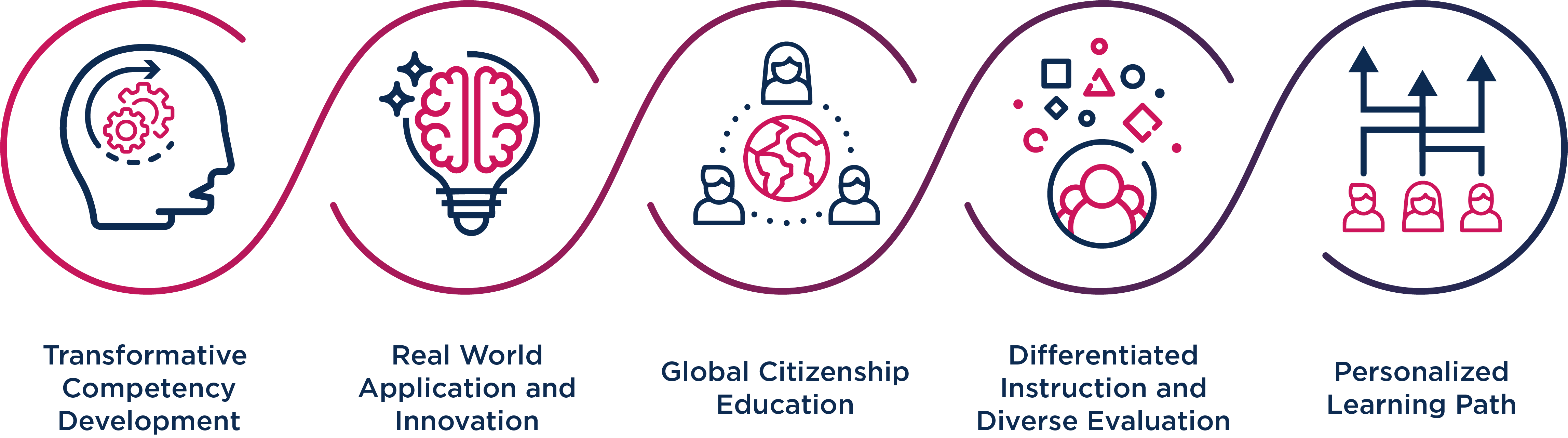Our Transformative Approach to Learning has five defined pillars focused on: Transformative competency development; real-world application and innovation; global citizenship education; differentiated instruction and diverse evaluation; and the creation of a personalized learning path. We provide well-structured solutions from curriculum, technology, teaching resources, teacher development, and academic services that interconnect with the support our international partner schools require to implement transformative, global education.