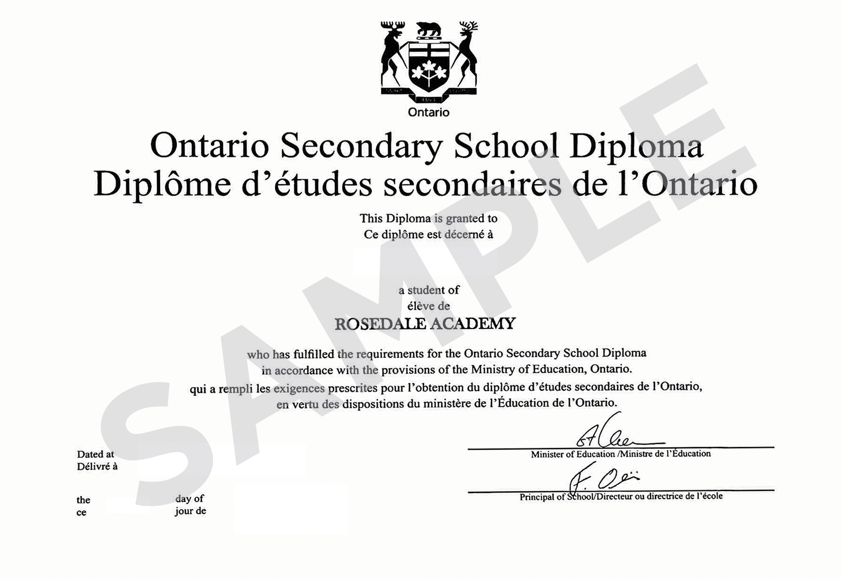 Students have to meet the following three requirements in order to graduate from Rosedale Global High School with an OSSD.